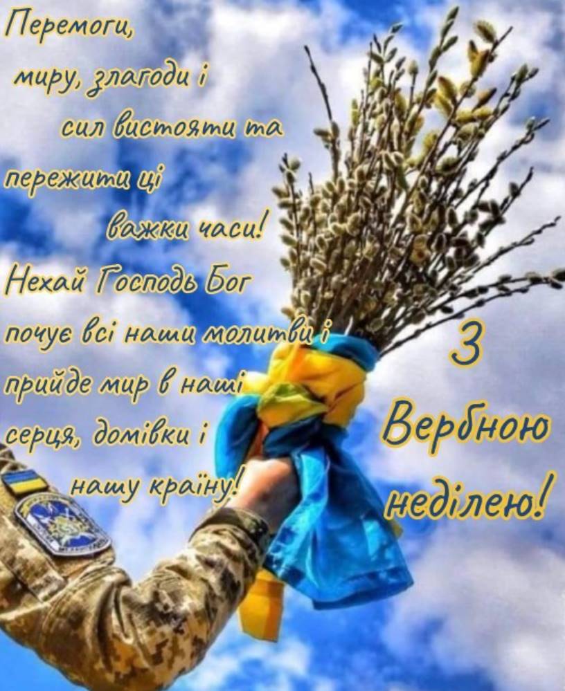 - З Вербною неділею! Бажаю вам душевного тепла, міцної віри, мирного неба та здійснення всього доброго, про що мріється.