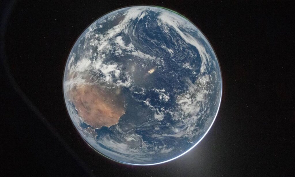 Інший знімок показує повний диск Землі з космосу. На ньому можна побачити два полярні сяйва — у верхній правій і нижній лівій частинах кадру. Також у нижньому правому секторі помітне слабке зодіакальне світло, яке з’явилося в момент, коли Земля частково закривала Сонце. На час зйомки корабель перебував приблизно за 170 тисяч кілометрів від планети.