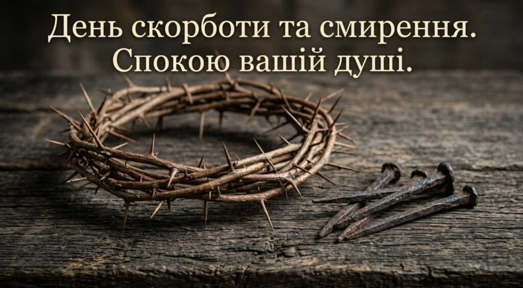 - Зі Страсною п’ятницею. Бажаю спокою, щирої віри, добрих думок і благословення. Нехай цей день принесе душевне очищення та світлу надію перед святом Воскресіння.