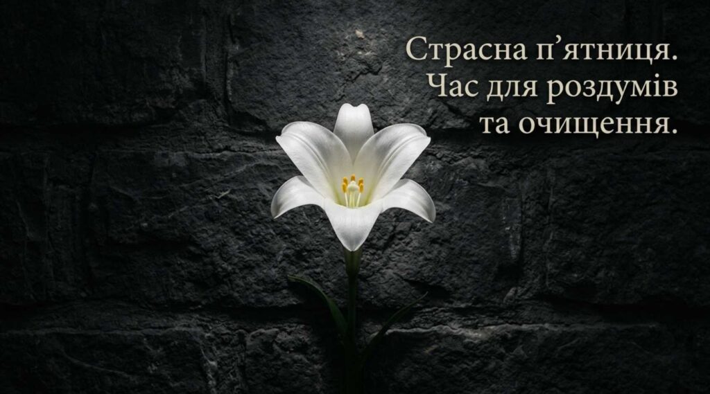 - Нехай Страсна п’ятниця стане днем тиші, очищення та духовного зміцнення. Бажаю вам душевного тепла, благодаті та світлого очікування Великодня.